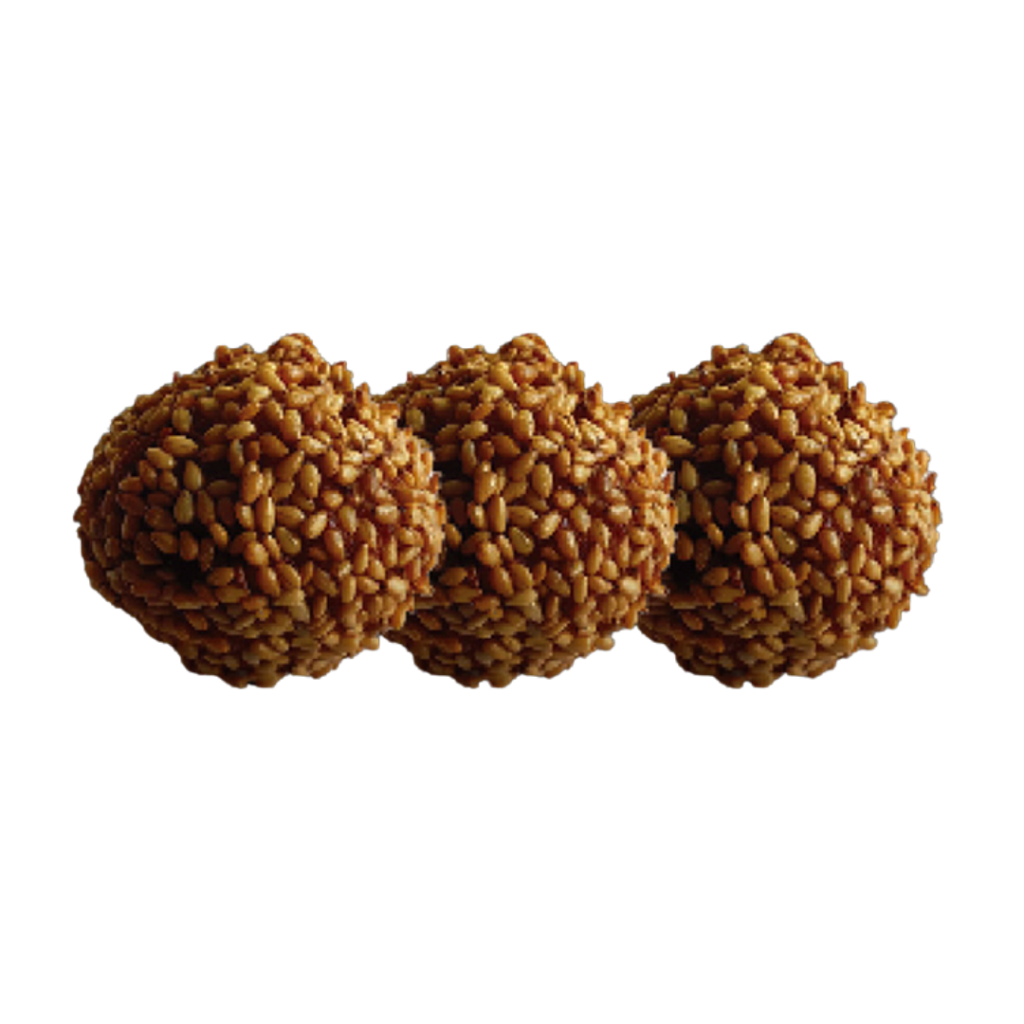 Massa fina envolvendo recheio de camarão. Textura suave.