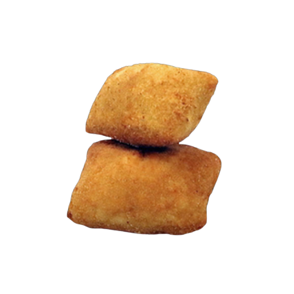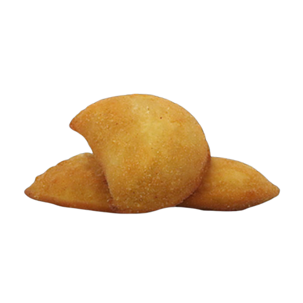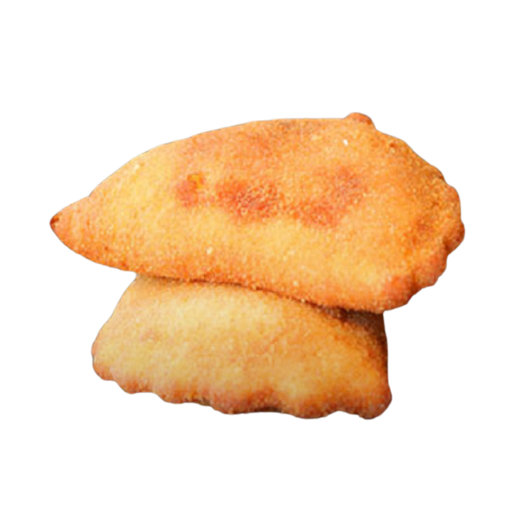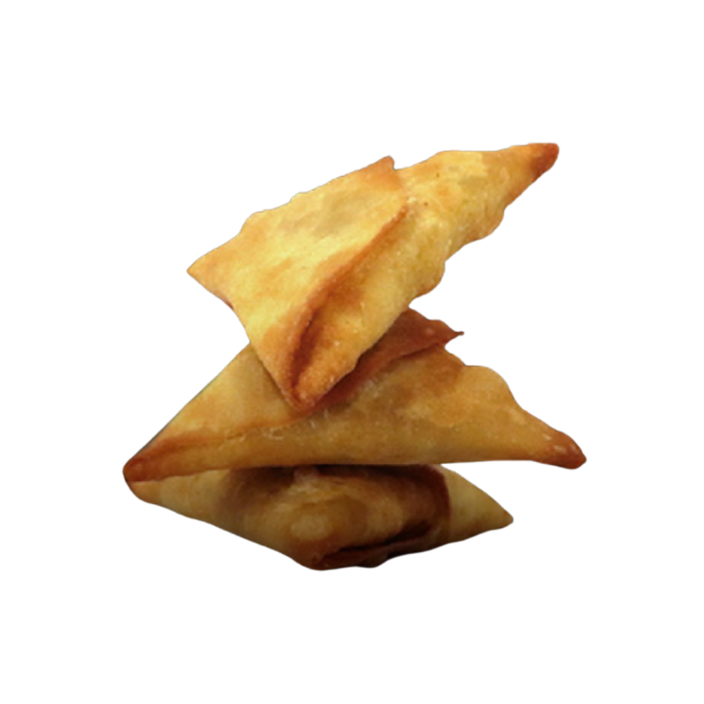 Massa fina e crocante envolvendo recheio de carne e especiarias.